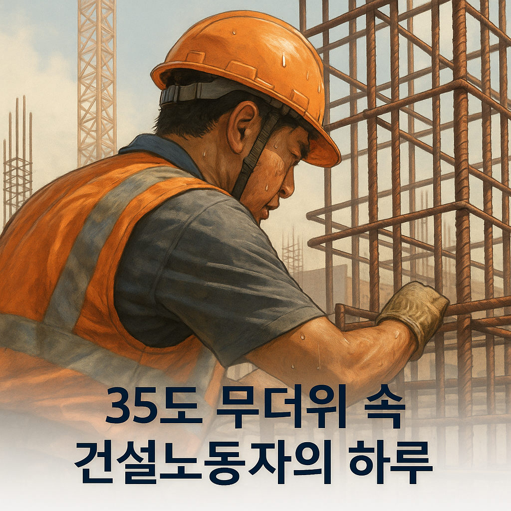 35도 무더위 속 철근 위의 하루 – 건설노동자의 땀방울