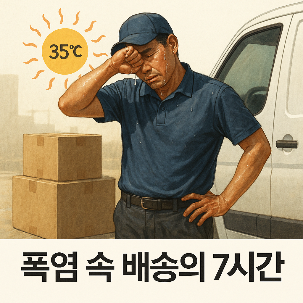 🌡️ 서울 기준 35도를 넘긴 한여름, 택배기사 김○호 씨(42세)의 하루를 동행해봤습니다. 오전 7시부터 오후 2시까지, 단 한 번도 제대로 앉지 못한 그의 하루는 상상 이상이었습니다.