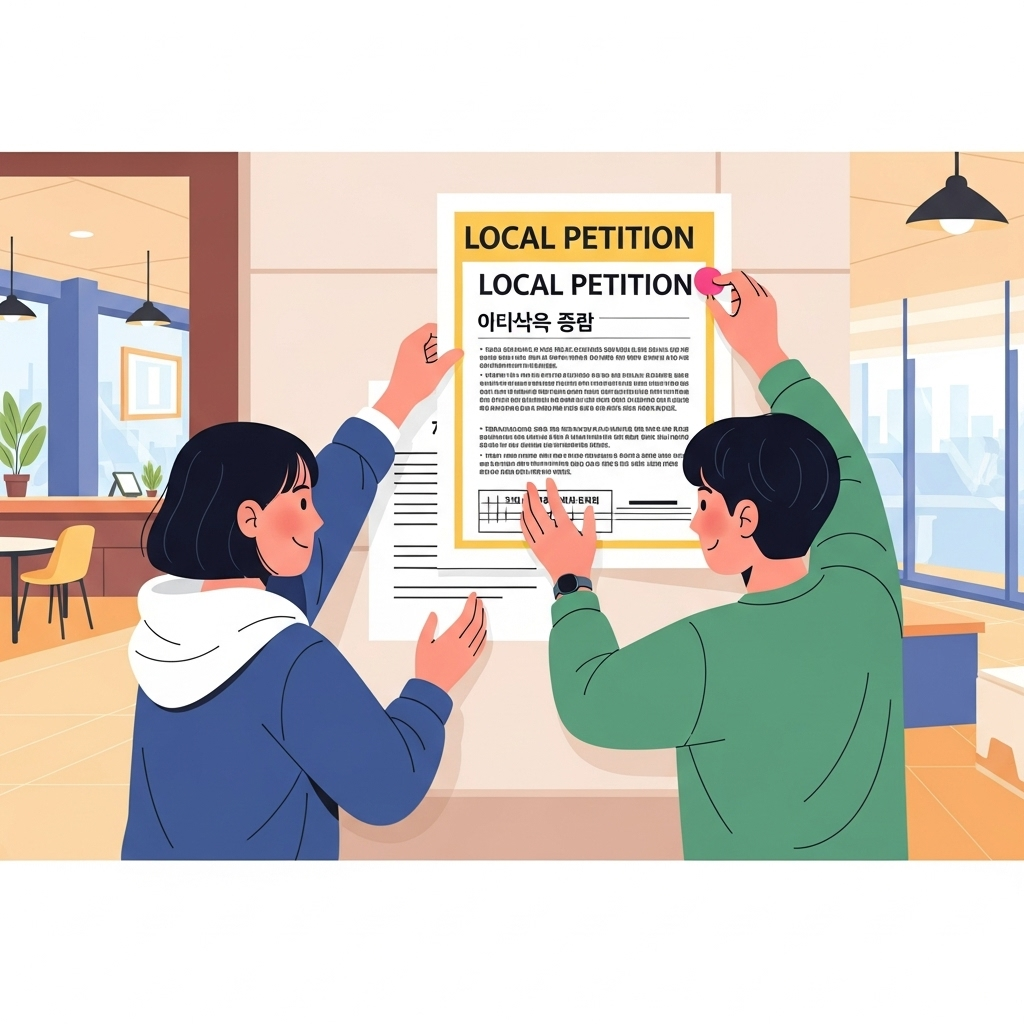 지방자치법에 따라 일정 수 이상의 주민 서명으로 지방정부에 정책을 제안할 수 있습니다. 조례 제정, 제도 개선을 요청하는 데 효과적입니다.