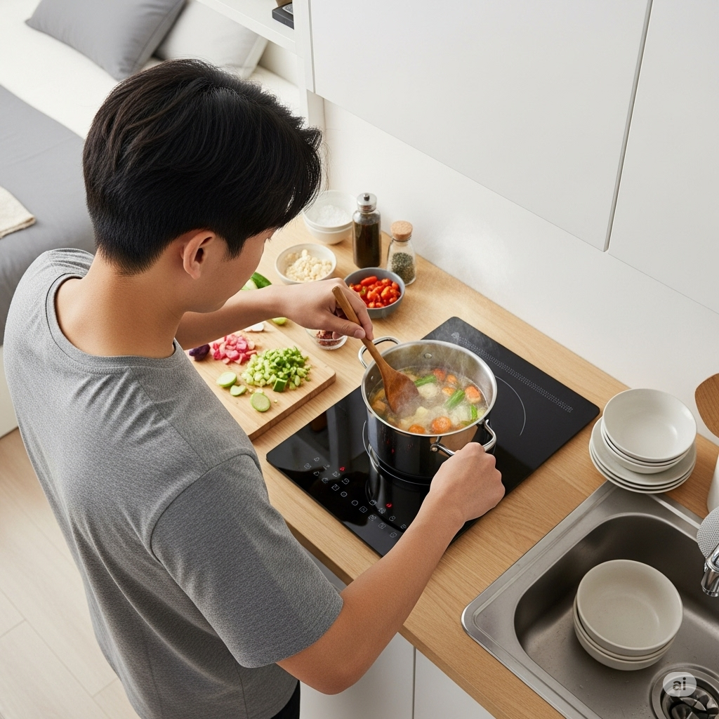 ➡️ 자취방에서는 화재 위험이 낮고, 요리 후 청소가 쉬운 인덕션이 훨씬 실용적입니다.