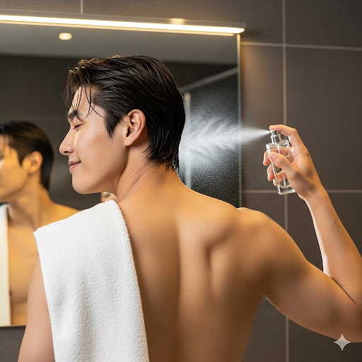 운동 후 향수를 올바르게 사용하는 한국인 남성