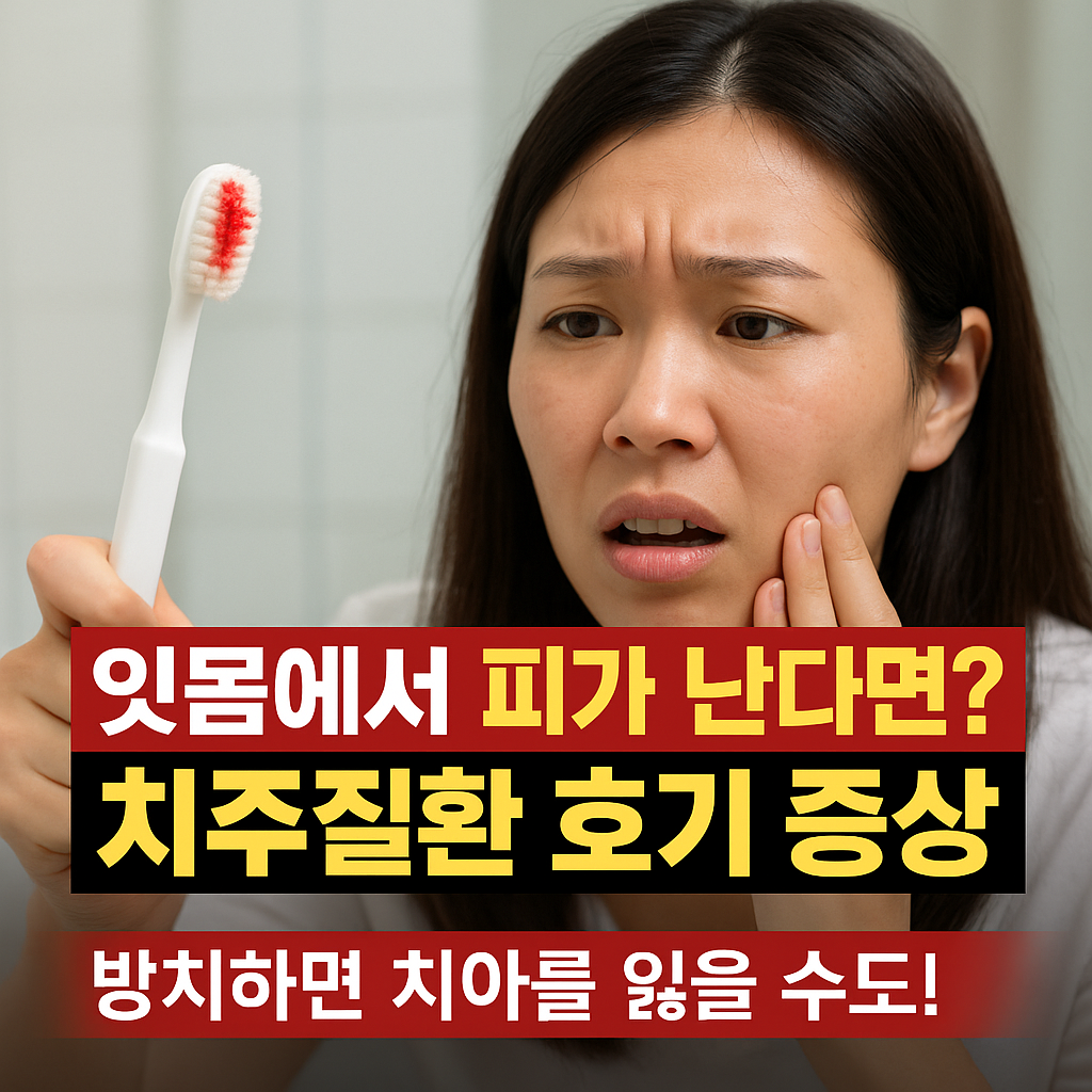 양치할 때마다 잇몸에서 피가 나거나, 잇몸이 붓고 들뜬 느낌을 자주 받으신다면 주의 깊게 살펴봐야 합니다. 이러한 증상은 단순히 피곤해서 생기는 것이 아니라, 치주질환의 초기 신호일 수 있기 때문입니다. 치주질환은 흔히 '풍치'라고 불리며, 방치하면 심각한 결과를 초래할 수 있습니다. 잇몸 건강을 지키기 위한 필수 정보를 알려드립니다. 🩸