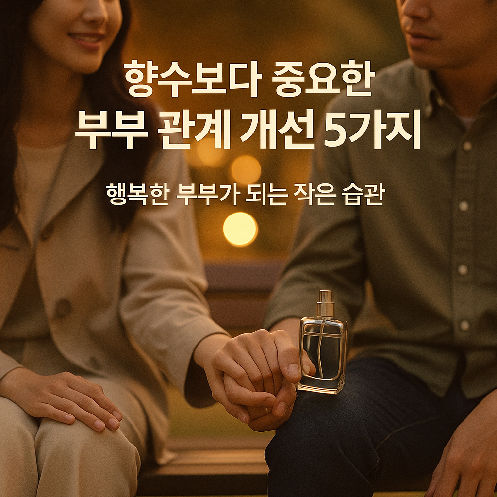 안녕하세요! 지난번 남자 향수 추천 글에서, 진정한 매력은 향기 그 이상에서 나온다는 이야기를 나눴었죠. 향수가 자신감을 높여주는 좋은 도구이기는 하지만, 관계의 깊이는 결국 서로에 대한 이해와 노력에서 시작됩니다. 오늘은 부부 관계의 행복을 되찾을 수 있는 실질적인 팁들을 이야기해 보려고 해요. 💑