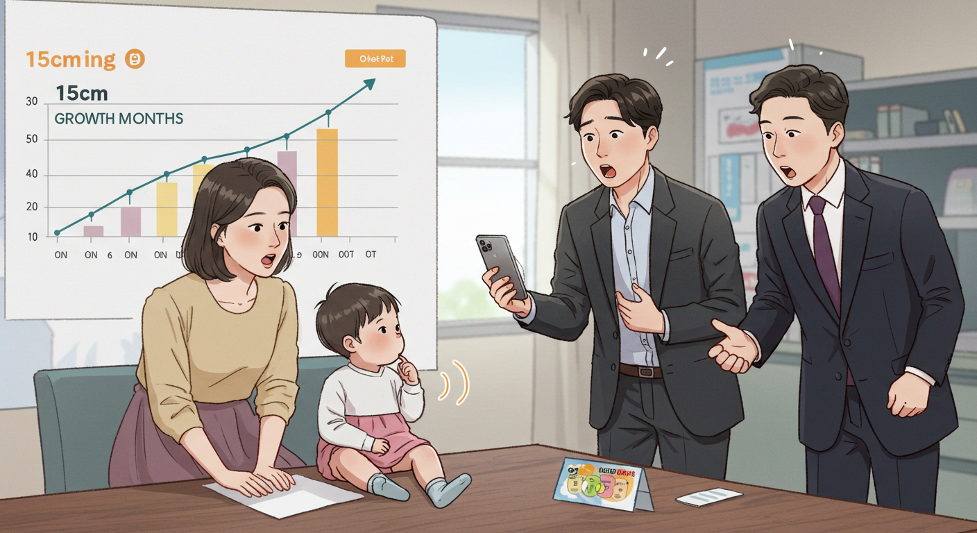 정상 아동은 보통 연간 4~6cm 성장합니다. 성장호르몬 결핍 아동이 치료를 받아도 1년 8~10cm 수준입니다. 즉, 6개월 만에 15cm 성장은 과학적으로 불가능합니다.