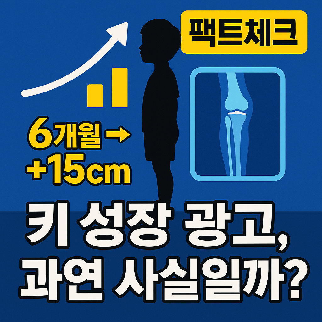 광고 속 ‘6개월 15cm 성장’은 과학적으로 불가능합니다. 키 성장은 유전, 영양, 수면, 운동 등이 함께 작용하는 복합적 과정입니다. 영양제는 보조적 도움만 줄 수 있으며, 생활 습관 관리와 전문가 상담이 우선입니다.