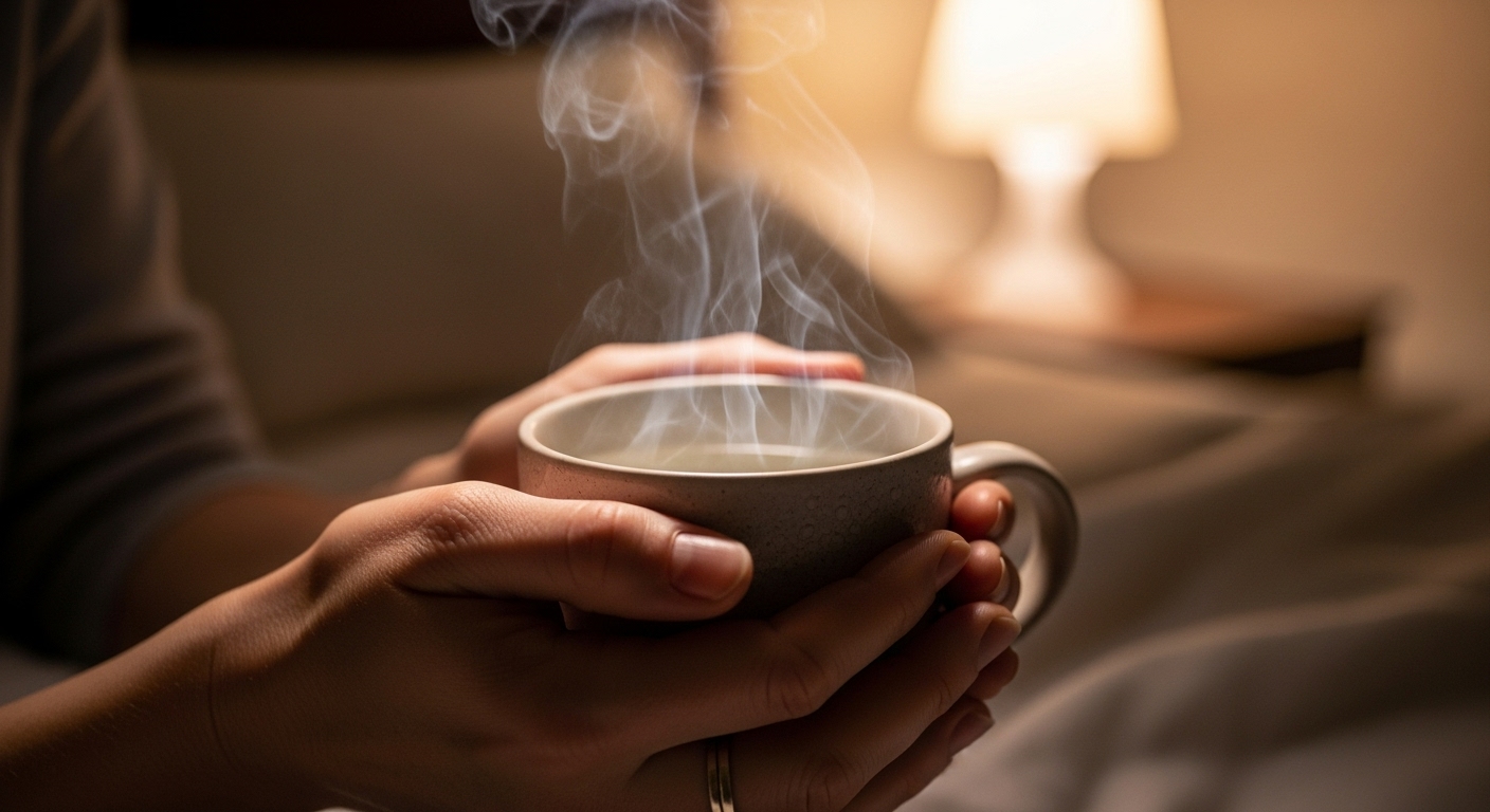 미지근한 물 한 잔은 체온을 안정시키고 긴장을 완화시켜 숙면을 유도합니다. 단, 과도한 수분 섭취는 야간뇨를 유발할 수 있으니 한 컵 정도로 충분합니다.