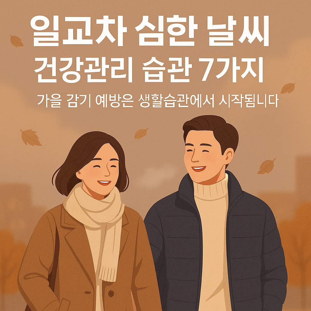 일교차, 환절기건강, 감기예방, 수면습관, 보온관리, 가을생활, 건강루틴, 질병관리청, 비타민섭취, 면역력, 스트레칭, 수분섭취, 가습기, 건강수칙, 계절관리,
