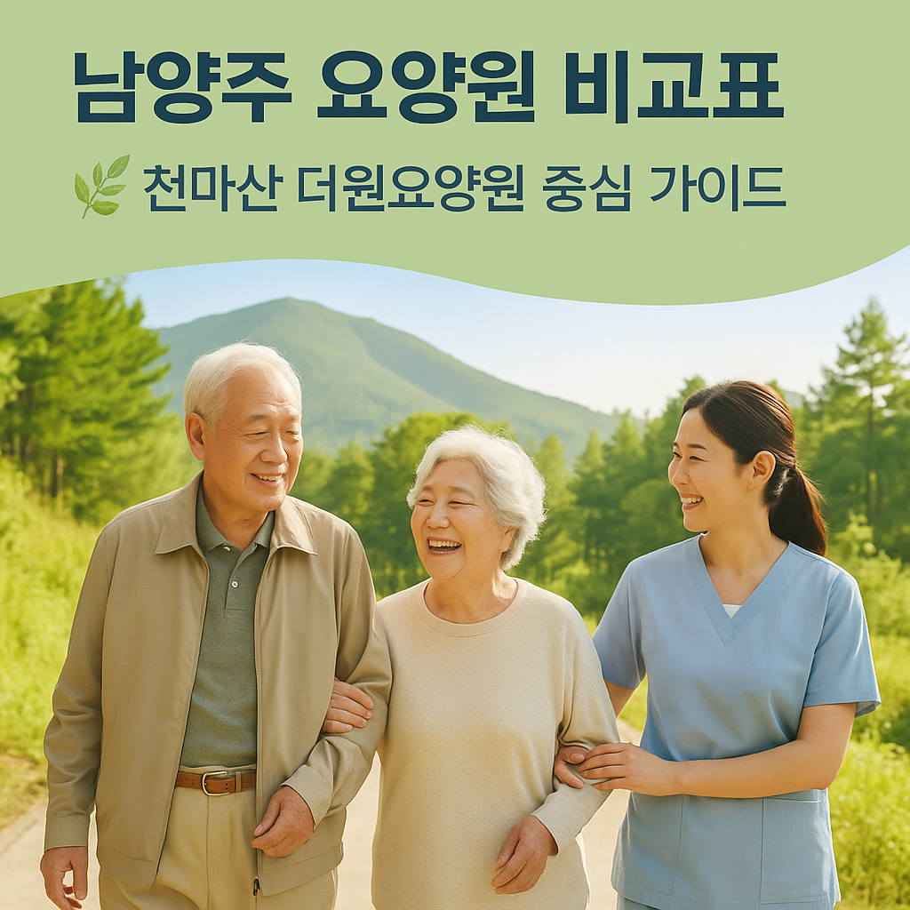 남양주 천마산 권역에서 요양원을 비교할 때는 ‘입지’도 중요하지만 결국은 **“돌봄 질”과 “가족의 방문 편의성”**입니다. 더원요양원을 포함한 비교표를 참고하셔서 실제 상담 방문까지 이어진다면 후회 없는 선택에 한발 다가가실 수 있습니다.