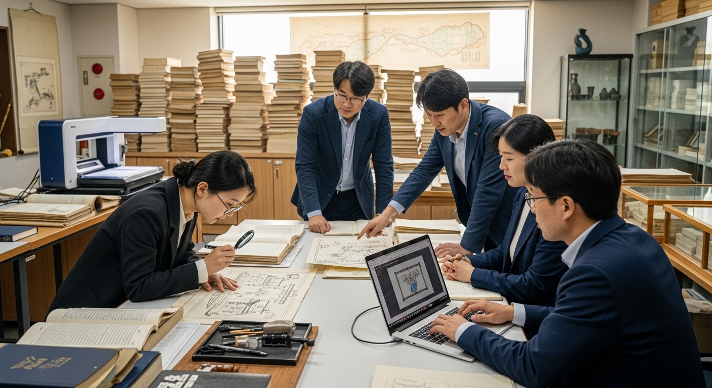 AI 복원팀은 먼저 조선왕조실록, 궁궐 도면, 과거 사진 기록 등 500여 건의 자료를 분석했습니다. 특히 일제강점기 이전 흑백 사진에서 현판의 원래 획 방향과 비율을 추출했습니다. 이 데이터를 바탕으로 AI가 학습할 수 있도록 서체 벡터 데이터셋을 구축했습니다.