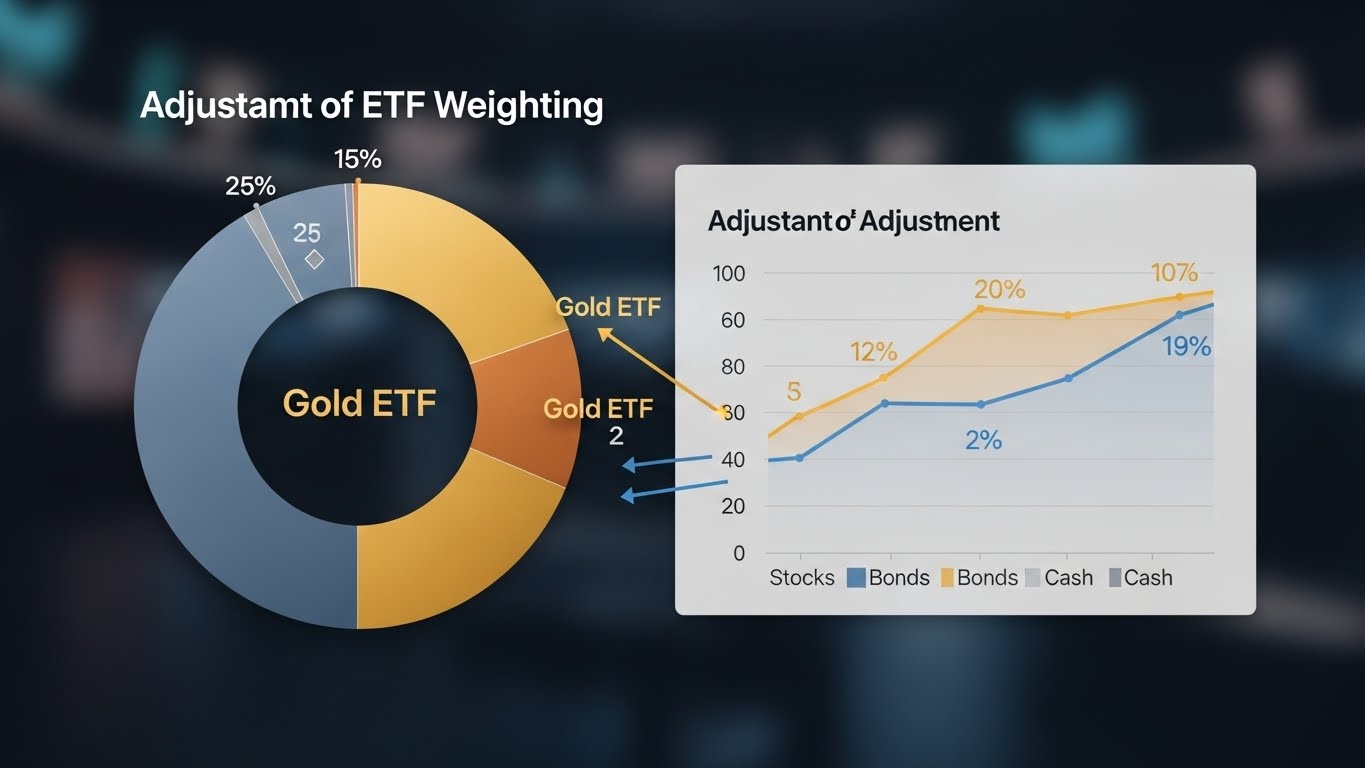 리밸런싱은 포트폴리오에서 금 ETF 비중을 주기적으로 조정하는 것을 말합니다. 금리 하락기에는 비중을 늘리고, 달러 강세기에는 줄이는 전략이 일반적입니다.